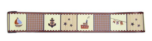 - Features sail boats, lighthouses, anchors and tug boats, accented with rope trim